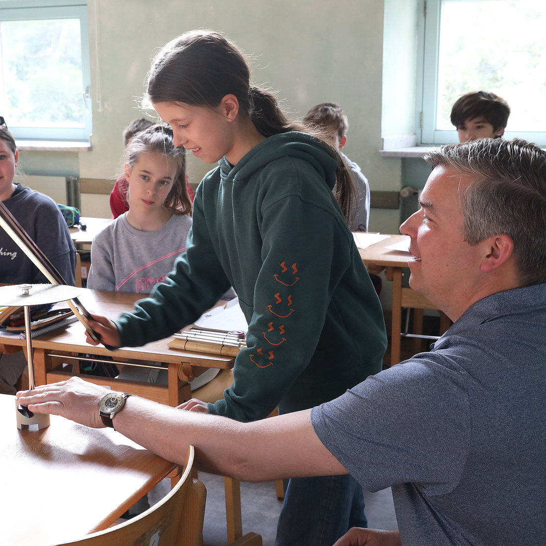 Die Aufgaben der Oberstufenlehrkraft umfassen neben der Durchführung und Organisation des Unterrichts die Betreuung einer Klasse, das Vorbereiten und Begleiten von Praktika und Klassenfahrten sowie die verantwortliche Mitarbeit in der Selbstverwaltung der Schule. Für die Physiklehrkraft kommen weitere fachspezifische Aufgaben hinzu, wie die Betreuung, Pflege und Erweiterung der Sammlungen und Laboreinrichtungen, einschließlich sämtlicher Sicherheits- und Entsorgungsfragen oder die Unterstützung der Kolleg:innen bei ihren Physikepochen in der Mittelstufe.