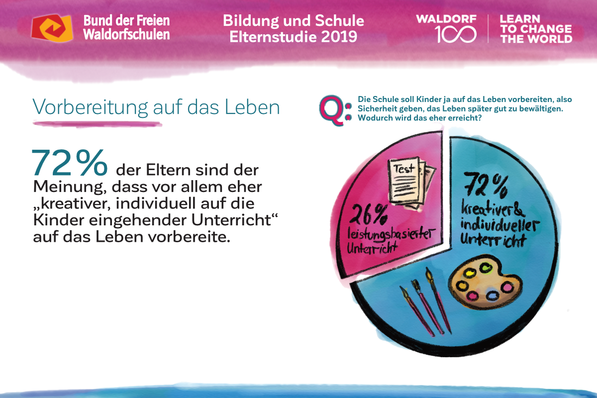 Für die repräsentative Studie befragte das Meinungsforschungsinstitut Mentefactum in Kooperation mit Aris Umfrageforschung im Januar und Februar 2019 im Auftrag des Bundes der Freien Waldorfschulen telefonisch 2.064 Eltern mit mindestens einem schulpflichtigen Kind bis zu 18 Jahren.